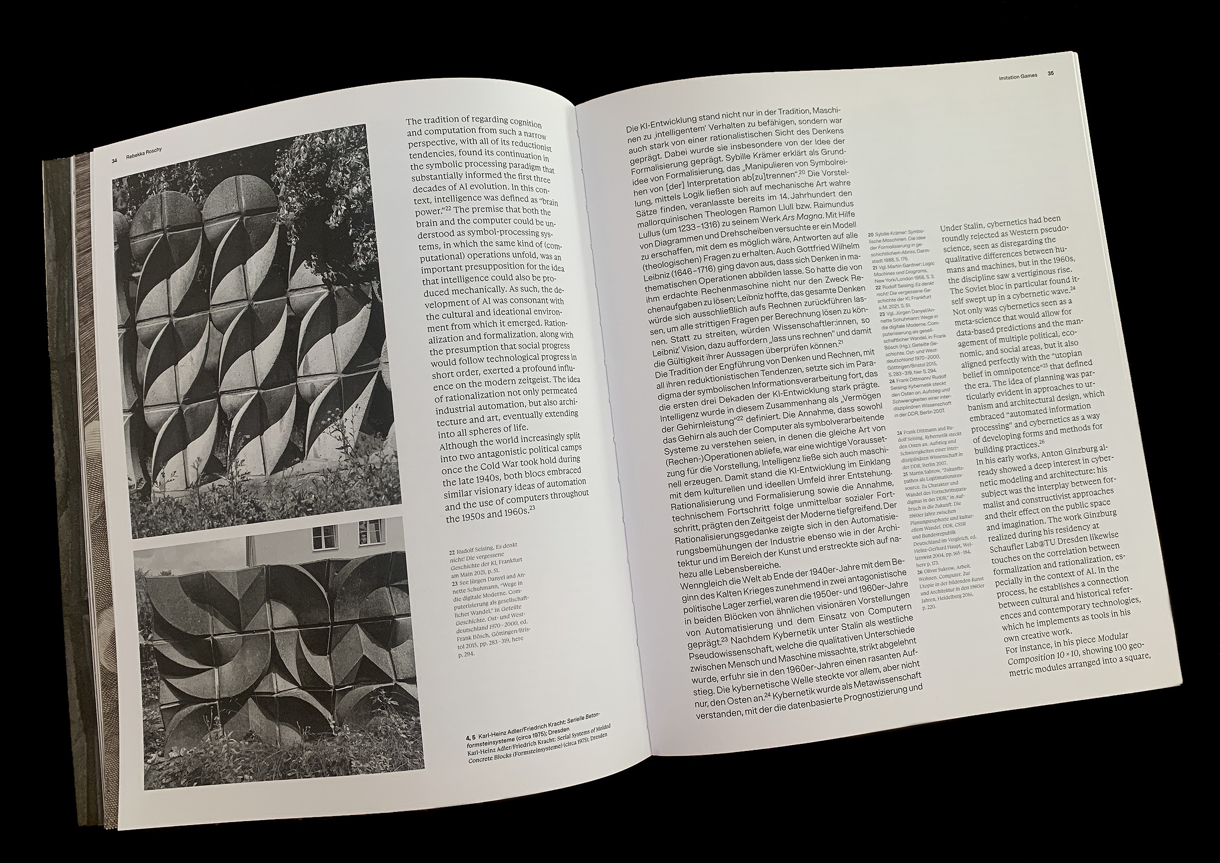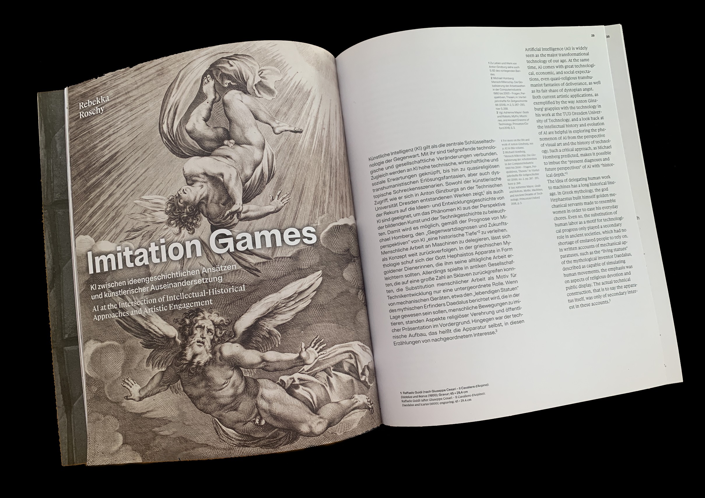 In 2021, the artist Anton Ginzburg (born 1974 in St. Petersburg, lives in New York) dealt with concepts of creativity and cultural work in a historical context as part of the Schaufler Residency@TU Dresden, with artificial intelligence primarily as an overarching social narrative between Utopia and disruption functioned. His works are inspired by the spirit of mechanical participation, which is increasingly becoming part of the processes of their organization and changing them in public.
