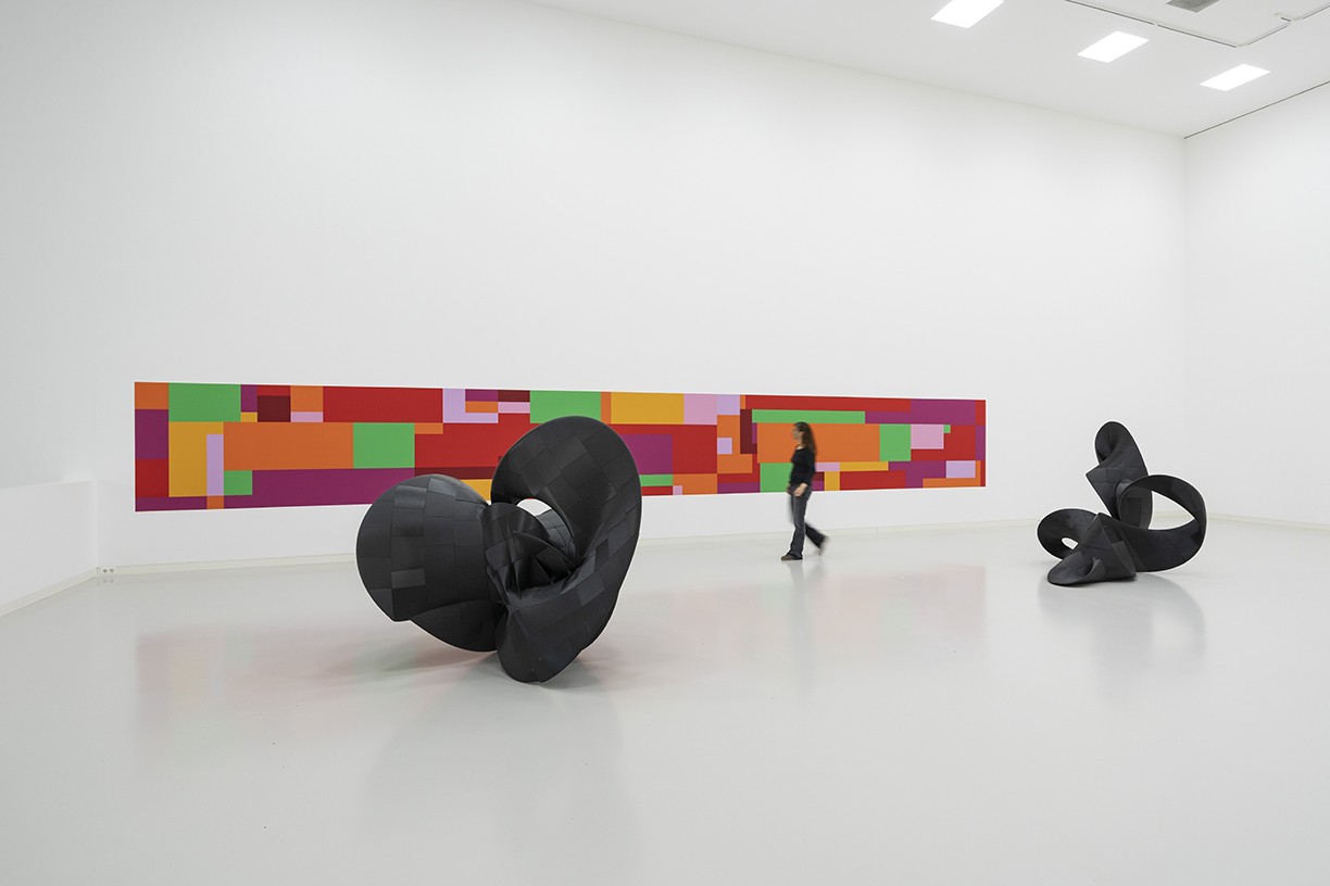 In the exhibition at Schauwerk Sindelfingen Museum in Germany, Anton Ginzburg presents works that transform digital data into physical artworks, exploring the intersection of algorithmic processes and emotional expression. The artist demonstrates how computational analysis reveals patterns in cultural materials through two series: large-format murals inspired by East German architectural modularity and sculptural forms derived from sentiment analysis of film scripts. Through these works, Ginzburg explores how digital tools mediate our understanding of human experience and examines the relationship between private emotion and public display.